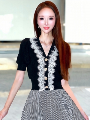 ☆再販予約 4日9時締切☆フローラルレースオーバーニットBLACK